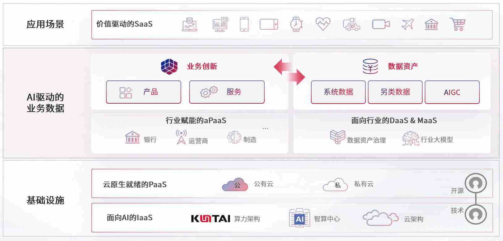 数字时代,,,围绕企业数字化转型的关键要素,,,,尊龙旗舰厅数码开创性的提出数云融合战略和技术体系框架,,着力在云原生、、、数字原生、、AI原生和信创产业上架构产品和服务能力,,为处在不同数字化转型阶段的快消零售、、汽车、、、金融、、医疗、、、政企、、、教育、、、运营商等行业客户提供泛在的敏捷IT能力和融合的数据驱动能力,,构建跨界融合创新的数字业务场景和新业务模式,,,,助力企业级客户建立面向未来的核心能力和竞争优势,,全面推动社会的数字化、、、智能化转型升级。。。。