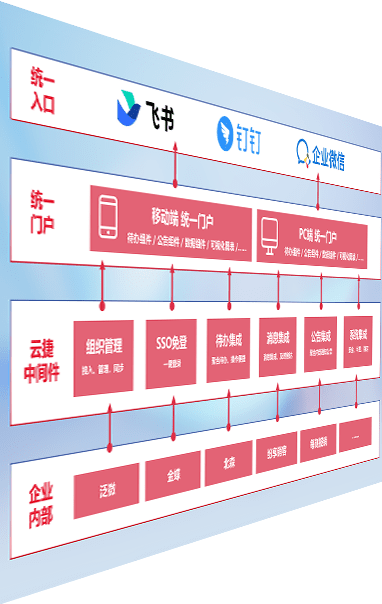 对协作平台提供支持服务,,,,支持企业应用与协作平台对接,,包含组织同步、、、、消息集成、、、、待办集成等。。。。支持目前主流的协作平台:钉钉、、、、企微和飞书。。。。